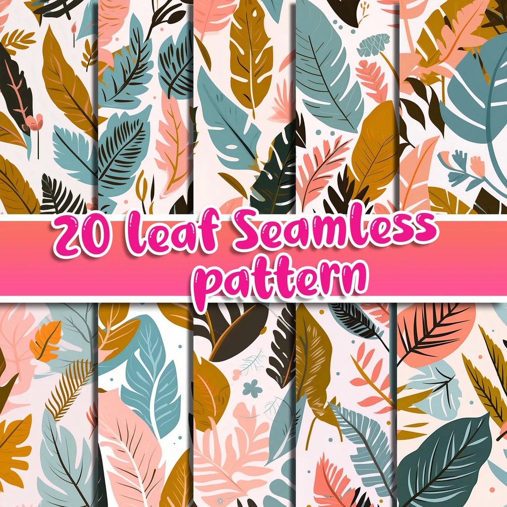 Leaf Seamless pattern is a stunning collection of 20 flower backgrounds, This digital paper measures 12 inches by 12 inches. These high-resolution JPEG digital files are suitable for a range of creative pursuits, including commercial and personal use.